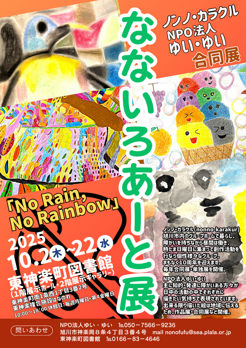 2025年10月2日(木)から22日(水)まで、東神楽町図書館で『なないろアート展』が開催されます。