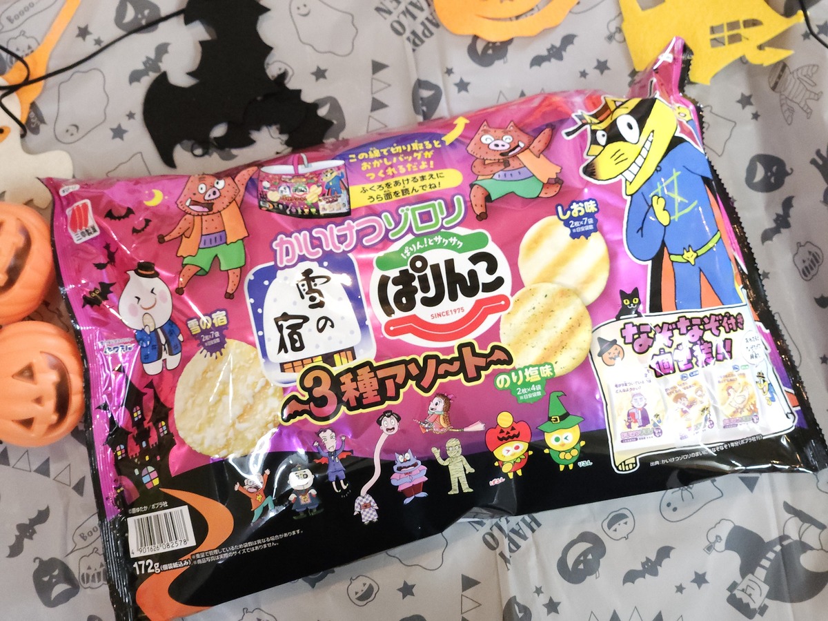 雪の宿、ぱりんこ(塩味・のり塩味)の3種入り。