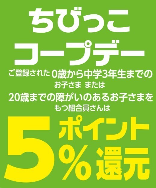 0歳~中学3年生までのお子様をもつご家族の方は、事前登録で5%ポイント還元。
