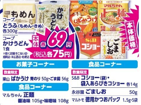 こちらも嬉しい本体69円(税込75円)均一セール!