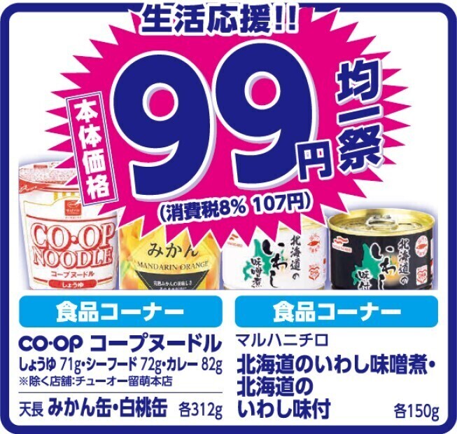 みかん缶、さらにマルハニチロの北海道産いわし缶までがこの価格!