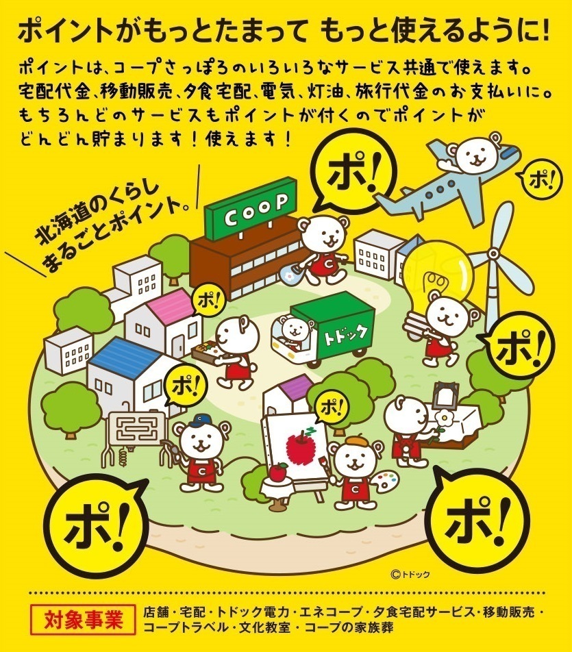 お店で利用だけでなく、宅配代金、移動販売、夕食宅配、電気、灯油、旅行代金のお支払いなど、どのサービスもポイントがつくのでドンドンポイントがたまります。