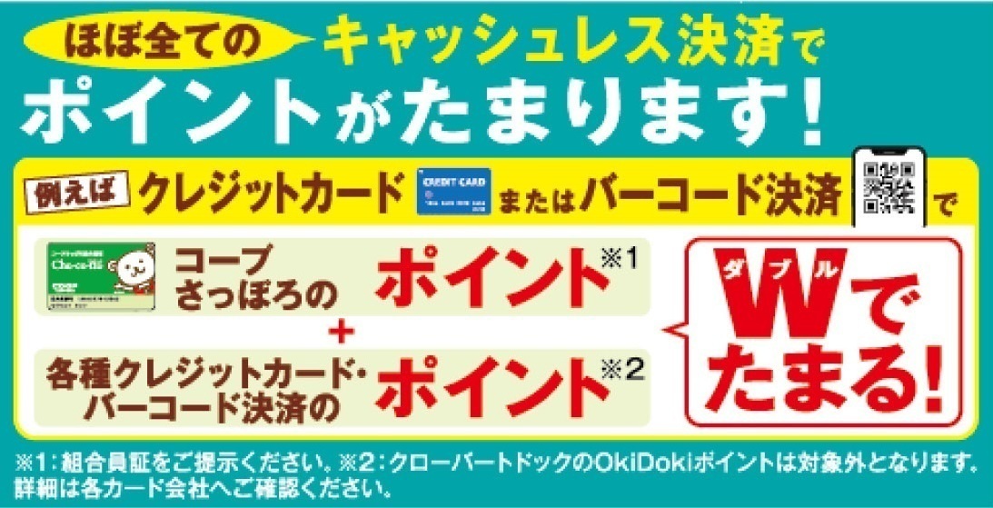 コープさっぽろはクレジットでもバーコード決済でもポイントがWでたまる!