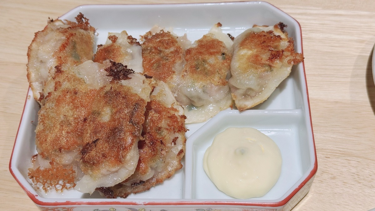 マヨネーズをつけたニンニクしっかり餃子は1個食べるだけでも、大ライスがどんどんへる美味しさでした。