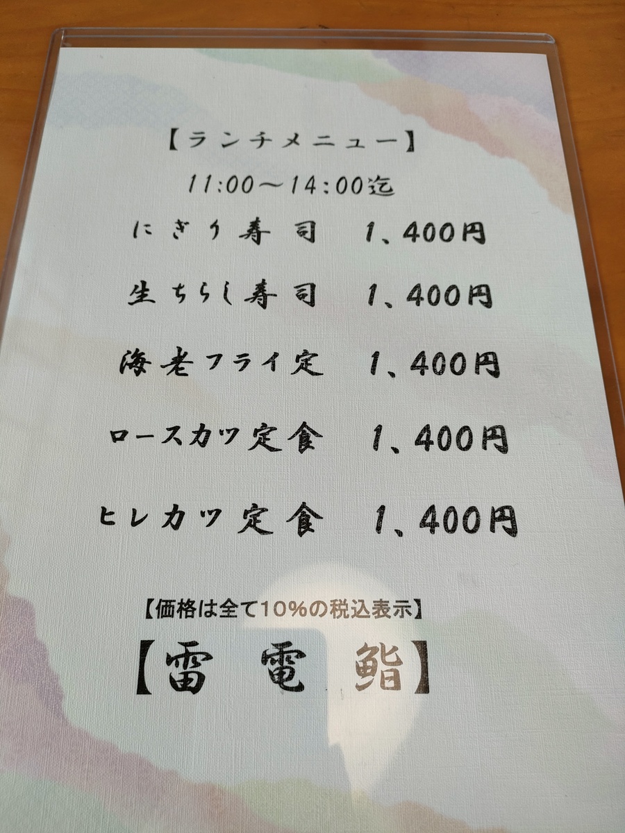 ランチメニューはにぎりやちらしのほか、エビフライ定食やカツ定食も。
