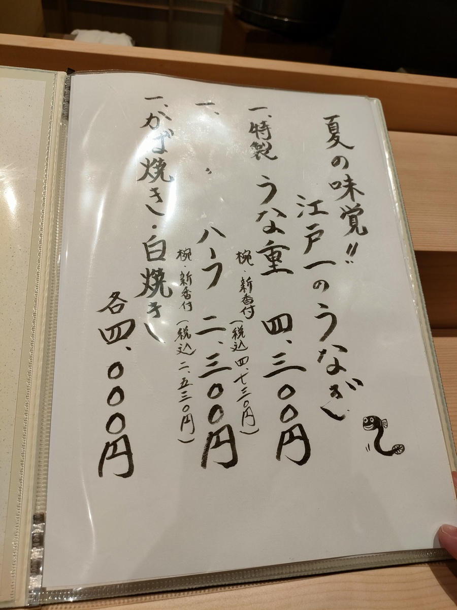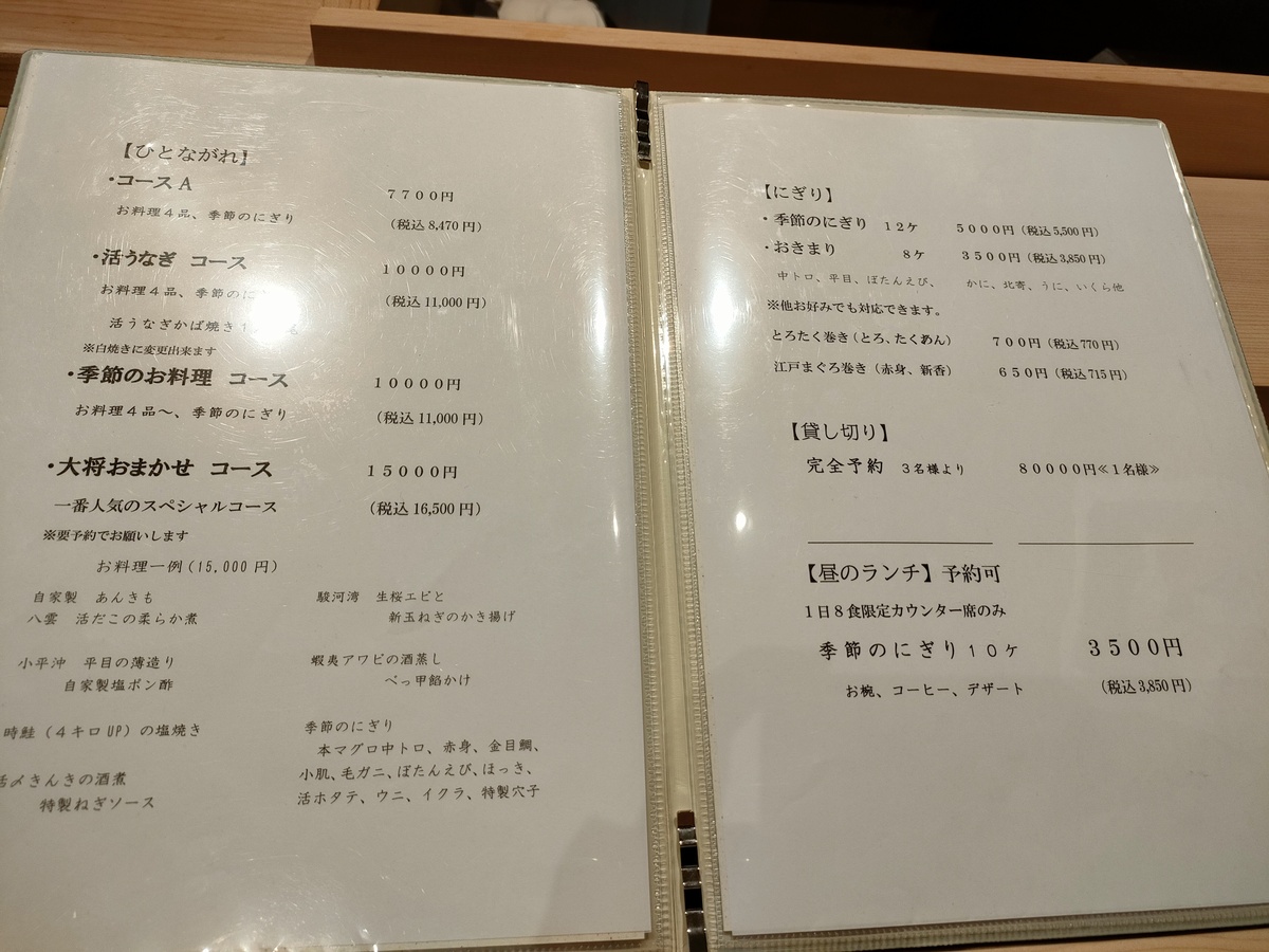 メニューは特別な日に頼みたいコース料理のほか、うな重や白焼きなどのうなぎ料理もありました。