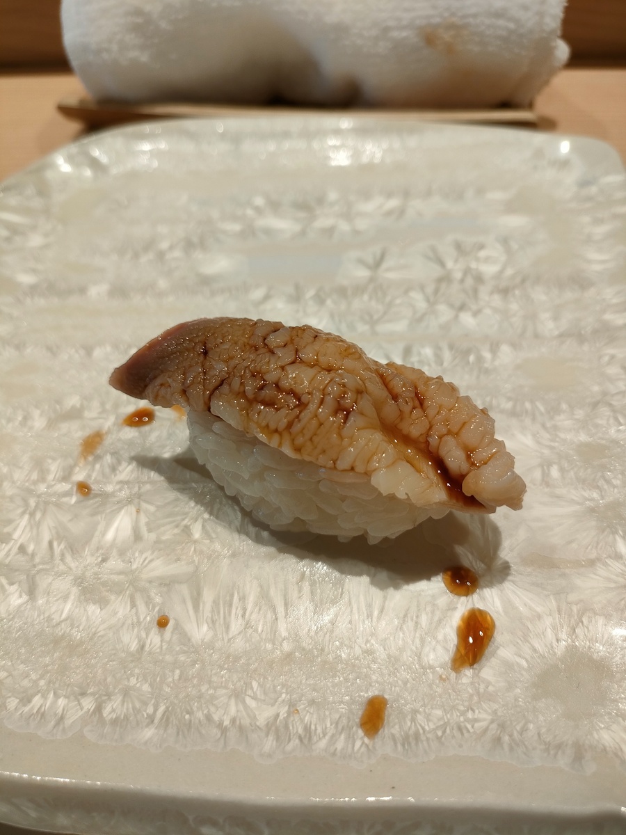 とりわけホッキやエビなどは、敢えて高すぎない鮮度で握ることで、ネタの旨味を最大限まで引き出しており、さらに繊維が少し柔らかくなることで、シャリとネタがしっかり絡み合っていると感じました。