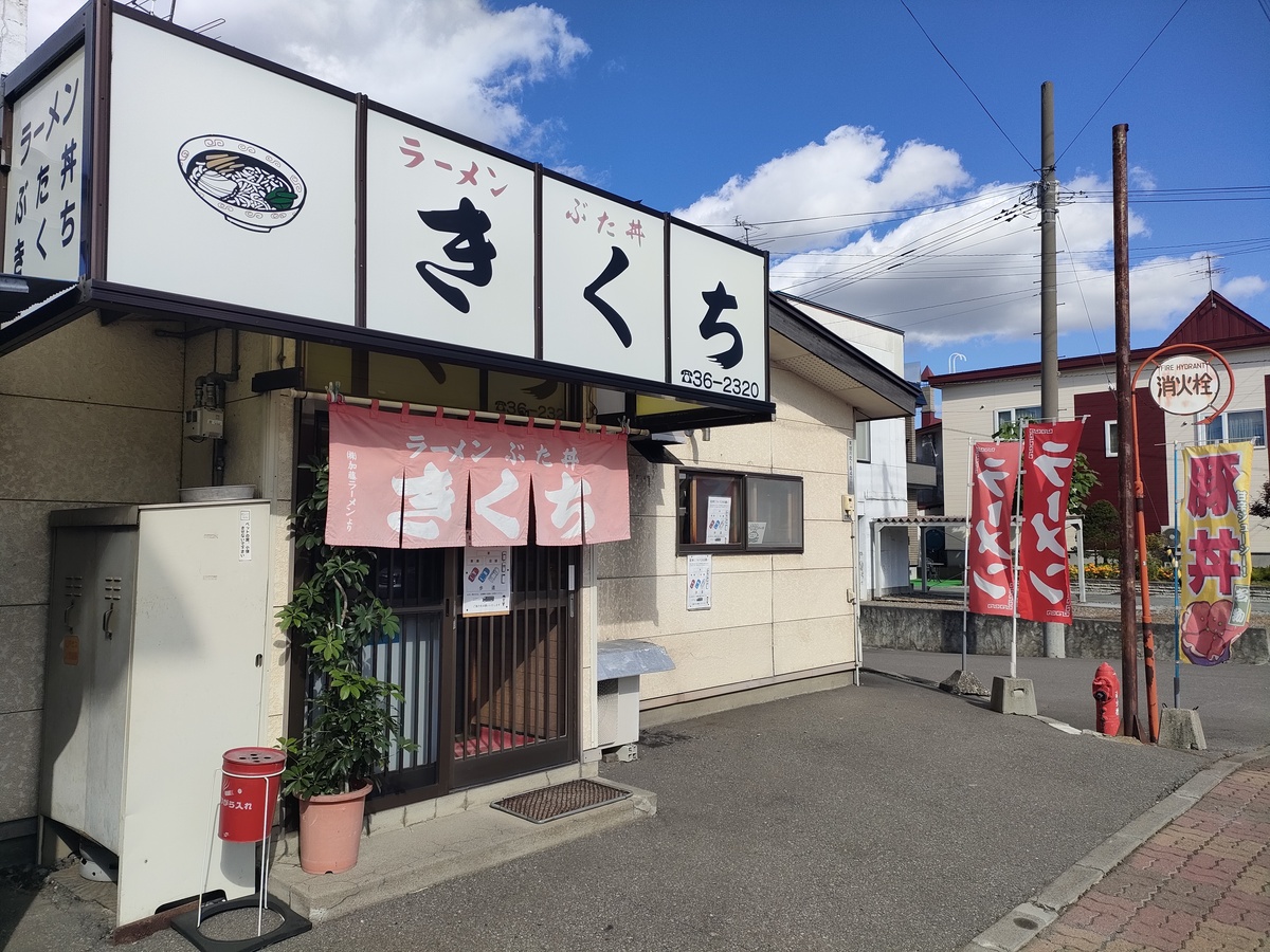 きくち食堂さんのお店の前にはラーメンと豚丼の幟(のぼり)が立っています。