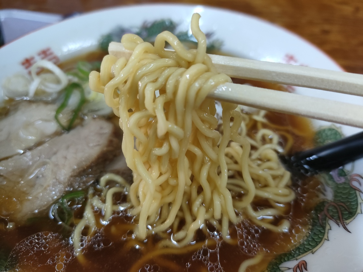 また、コチラのラーメンですが、加藤ラーメン系譜の細ちぢれ麺が程良くスープに絡みます。