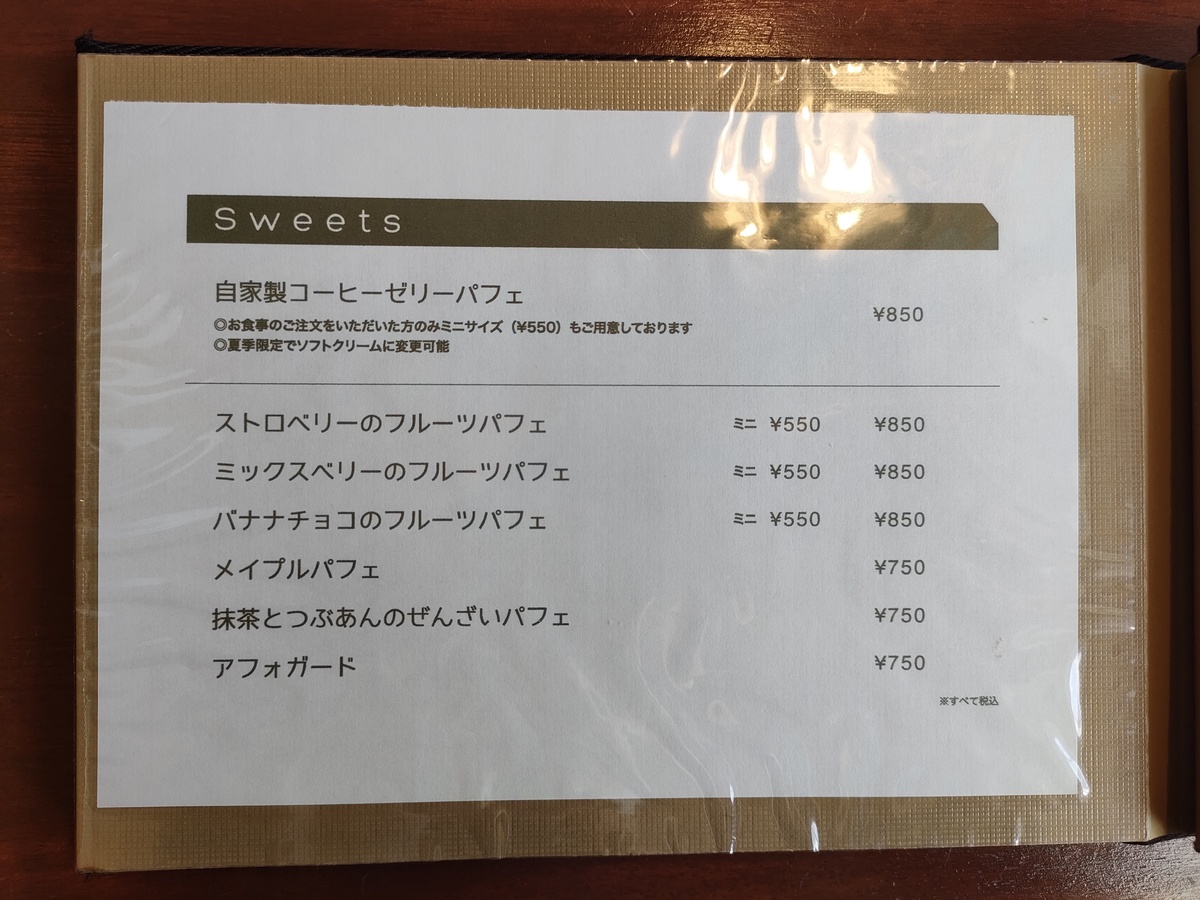 コーヒーが美味しいのはもちろんなんですが、メニュー表にある「自家製コーヒーゼリーパフェ」も凄く美味しいんですよね。