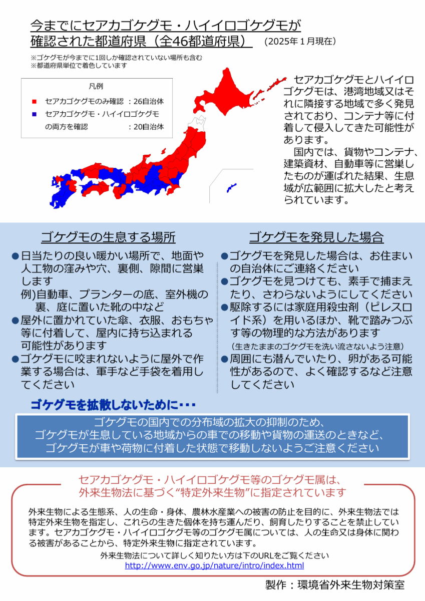 ・主に貨物や資材等に付着して日本国内で分布域を拡大。