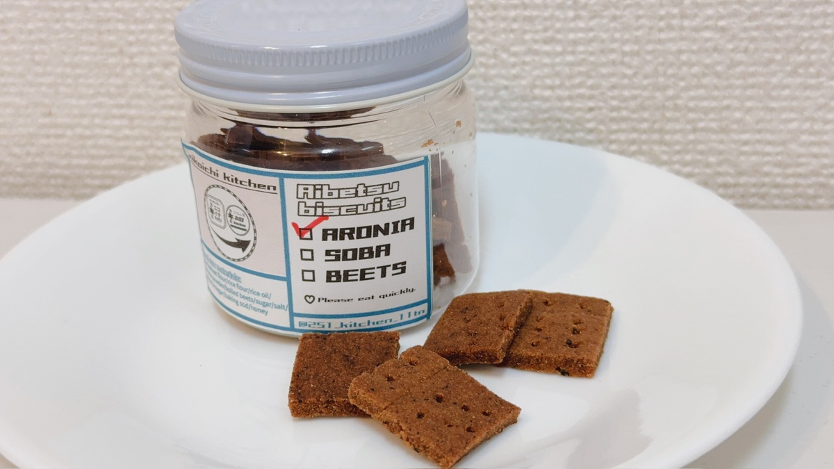 最近新しい商品が増えたよ!ということで購入したのはアロニアの米粉ビスケット。
