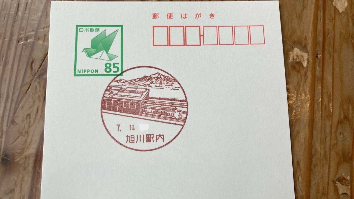 旅行中におすすめなのが、JR旭川駅構内にある「旭川駅内郵便局」の風景印。駅の中にあるためアクセスしやすく、さらに土日祝も営業しているので、観光客にも利用しやすいスポットです。