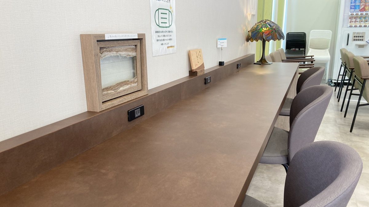 コンセントも完備されているので、ちょっとした作業にも便利です。