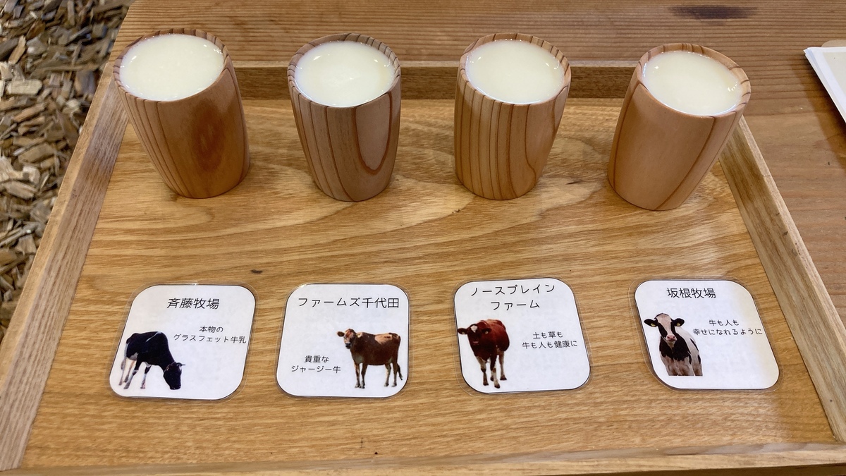 斉藤牧場、ノースプレインファーム、ファームズ千代田、坂根牧場、クリーマリー農夢の牛乳が楽しめます。あっさり系から濃厚な味まで、それぞれの個性が際立っていて、飲み比べが楽しい!