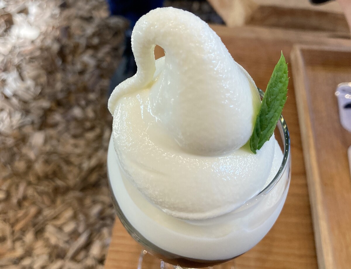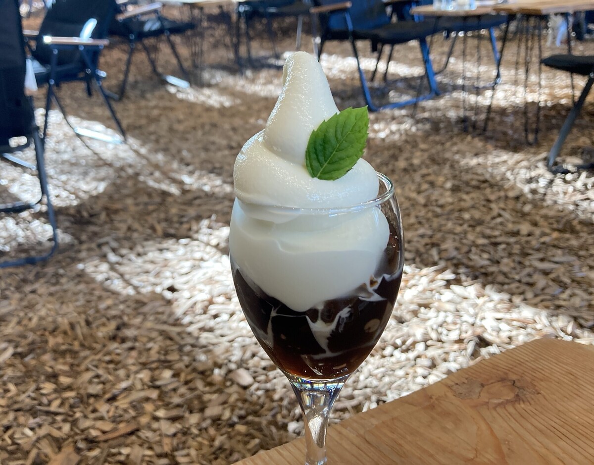 やさしい甘さのソフトクリームがコーヒーゼリーの苦味をまろやかにしてくれます。