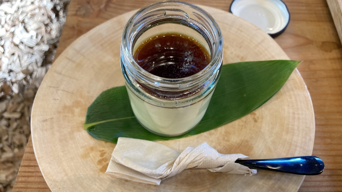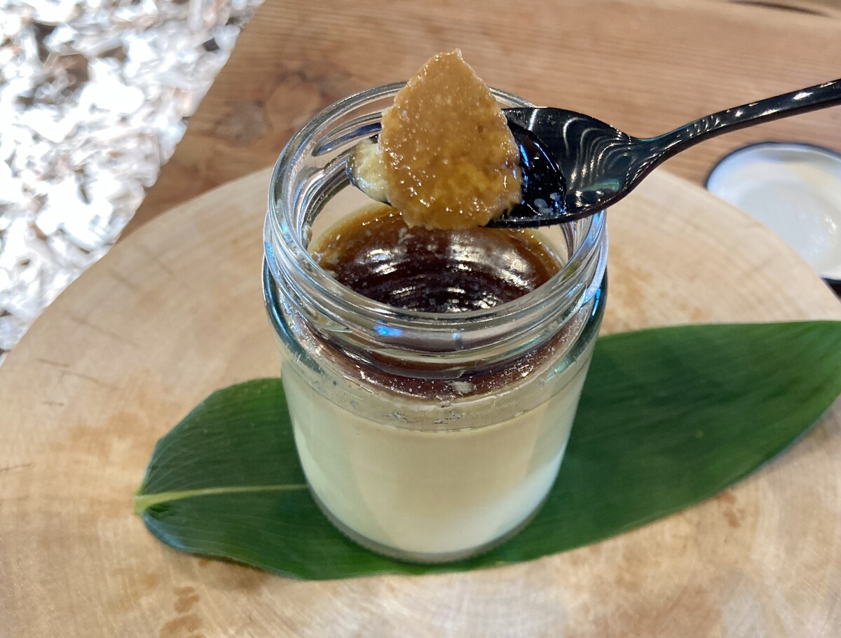 プリンは硬めで、牛乳の風味が濃厚。クマザサのやさしい甘さが絶妙にマッチしています。