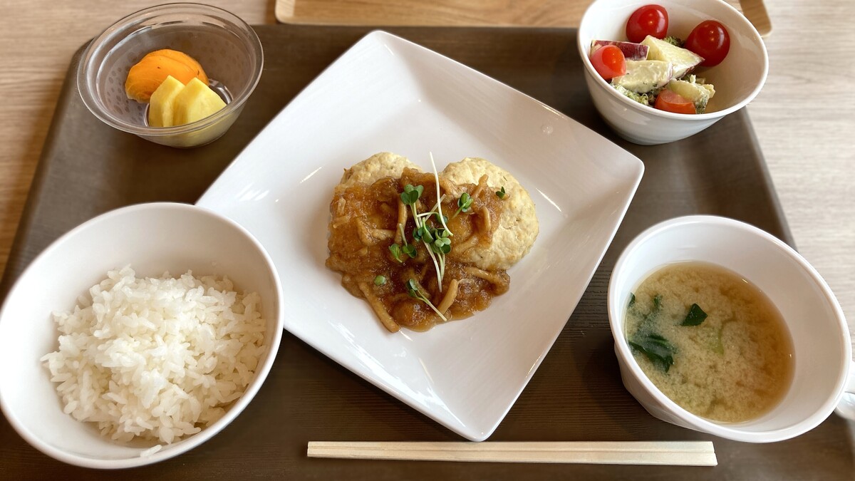 豆腐つくねはたんぱく質がしっかりとれる一品。薄味ですが、なめこと大根おろしの酸味が食欲をそそり、しっかり噛んで食べることで満足感も大。静かで落ち着いた空間も手伝って、心も体も整うランチでした。