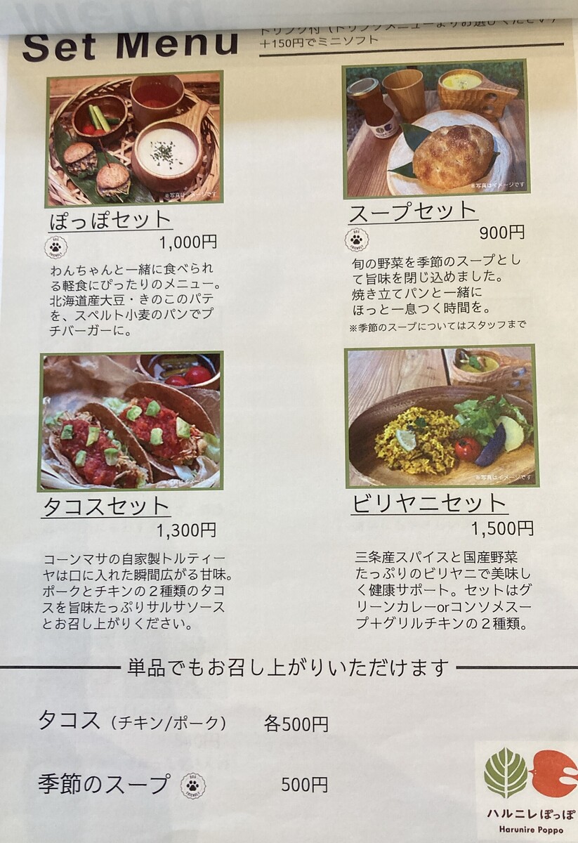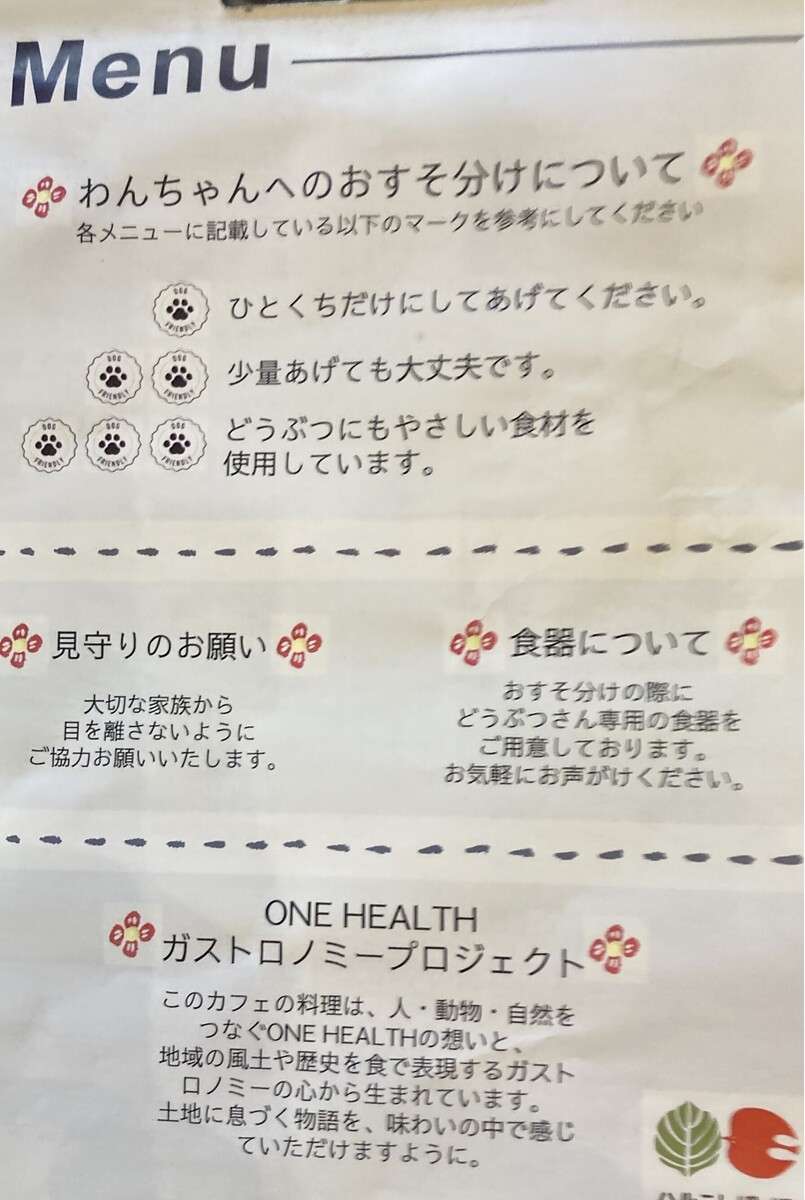 食事のメニューもあり、わんちゃんに「おすそ分けOK」のものはマークがついていました。一緒に食べられるのは嬉しいですね。