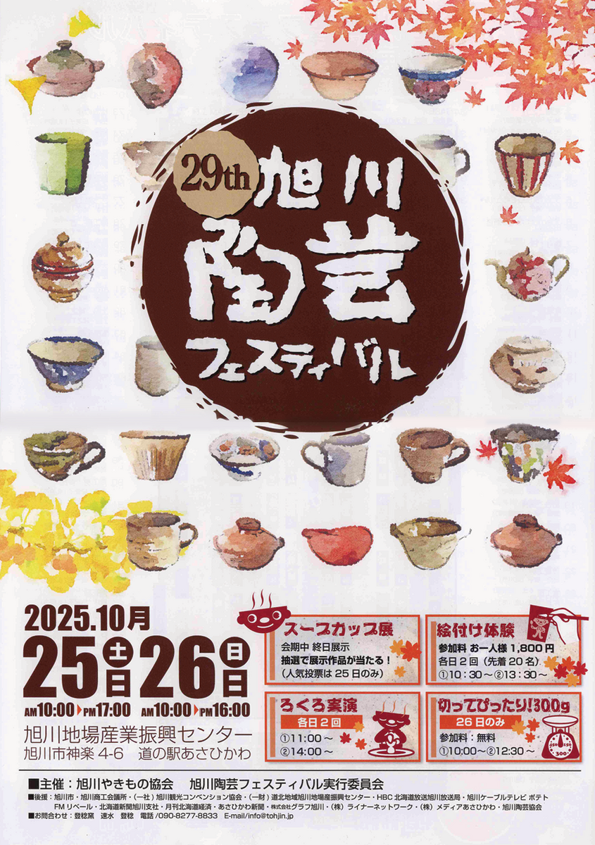 2025年10月25日(土)・26日(日)に旭川地場産業振興センターで『29th旭川陶芸フェスティバル』が開催されます。