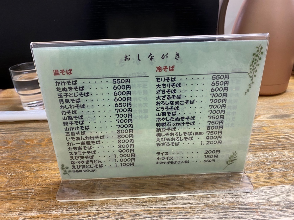 そのおそばは「スタミナそば」です。お品書きには、説明は書かれていません。