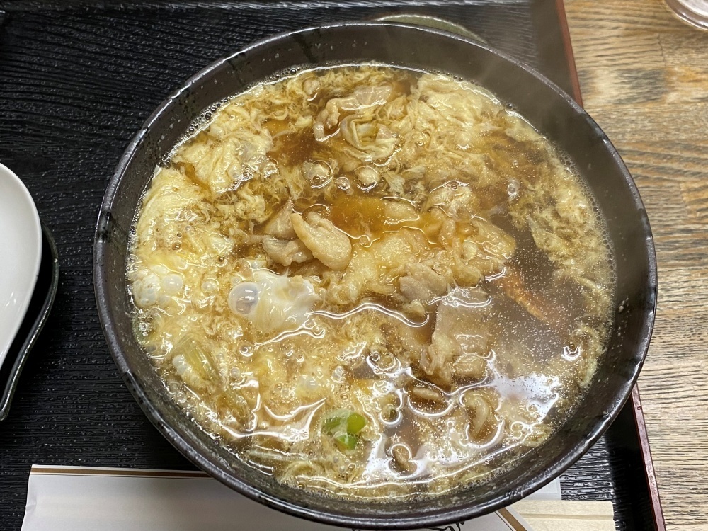 どんなスタミナが付く具が入っているのかと思ったら、鶏肉とエビの天ぷらがたまごでとじられていました。