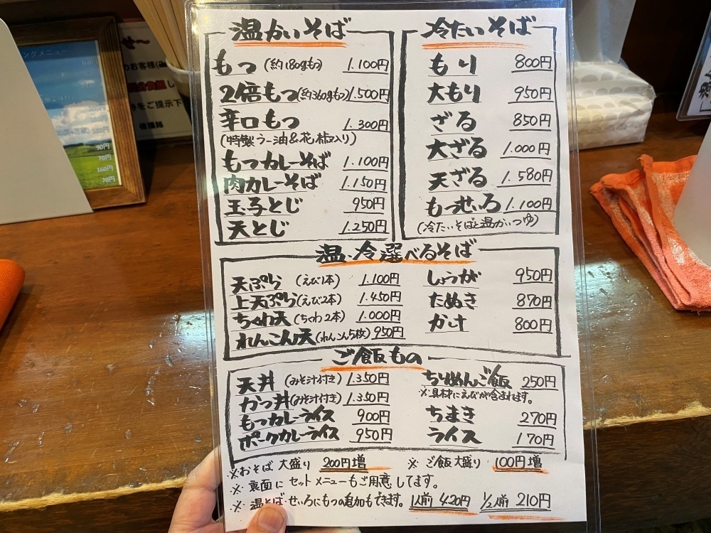 「もつそば」は何度か頂いたことがあるので、今回は冷たいそばから「もつせいろ」を食べてみましょう。