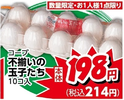 コープ不揃いの玉子たち10コ入税込214円!