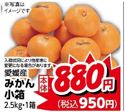 愛媛産みかん小箱2.5kg・1箱税込950円!
