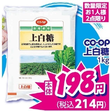 CO-OP上白糖1kgもこの価格!