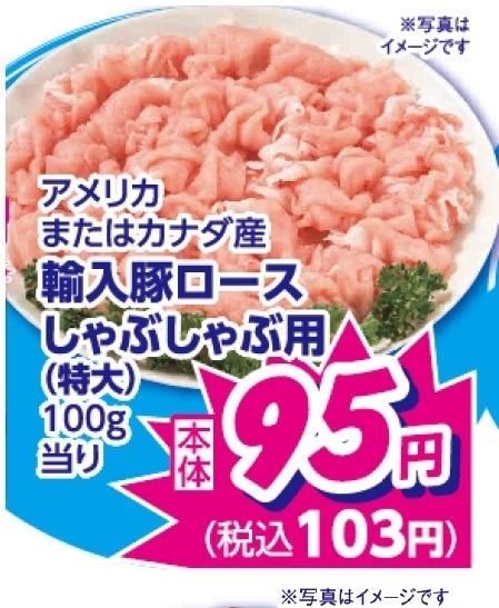 豚ロースしゃぶしゃぶ用が驚きの100g当り税込103円!