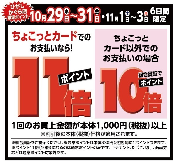 ひがしかぐら店限定、OPENから6日間はポイント10倍です!
