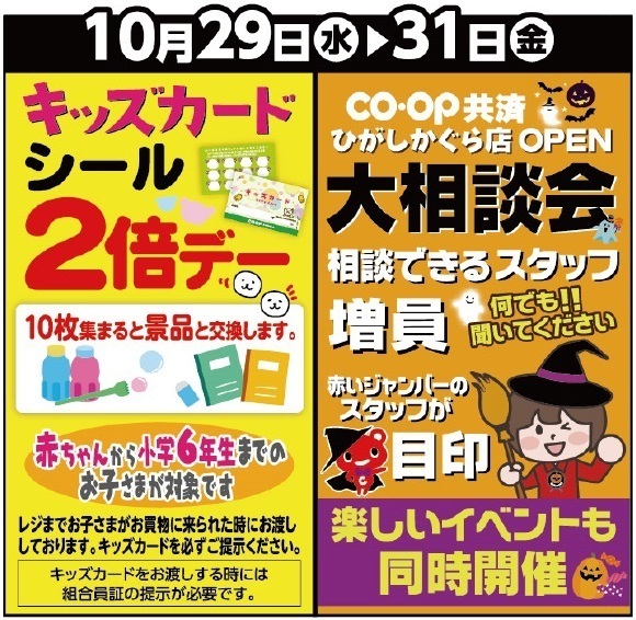 10月29日~30日の3日間はキッズシール2倍です。