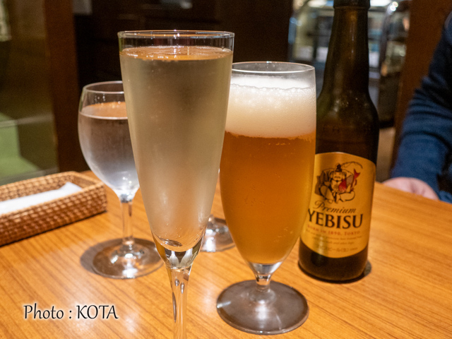 ビールを脚付きグラスでというスタイルは、店の雰囲気に合っていて、周りから浮いた感じがしない。