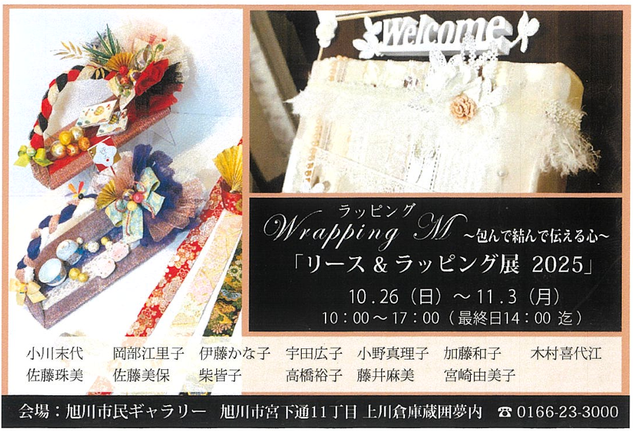 2025年10月26日(日)から11月3日(月)まで旭川市民ギャラリーで『リース&ラッピング展 2025』が開催されます。