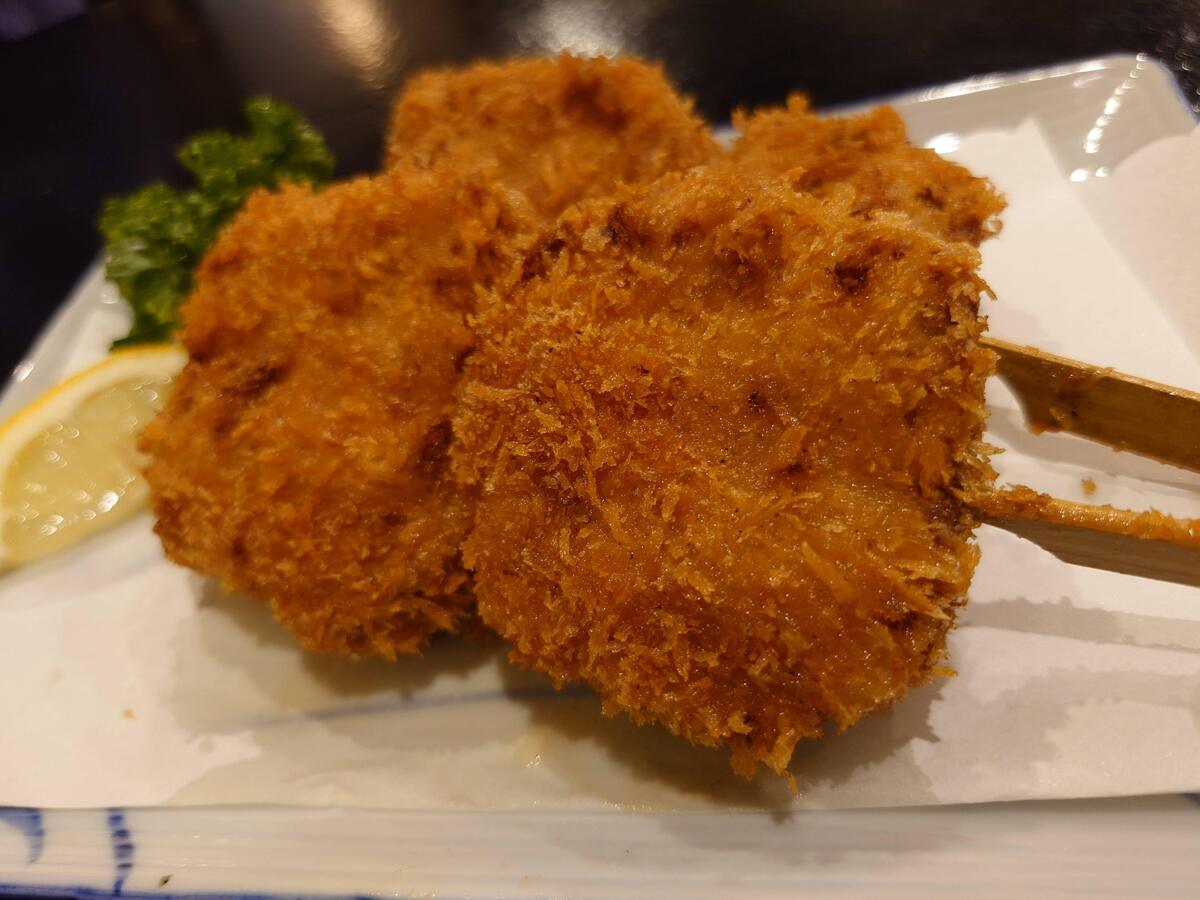 揚げではなく焼き!薄く衣が付いてて、ちょい焦げで焼きあげてる一品。