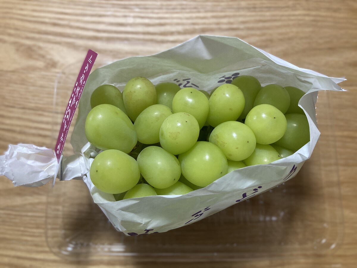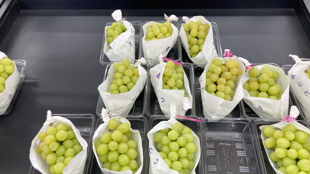 オープン記念で販売されていた余市産シャインマスカット(税込1080円)は、粒が大きくて甘くジューシー。大きさも味も満点でした。