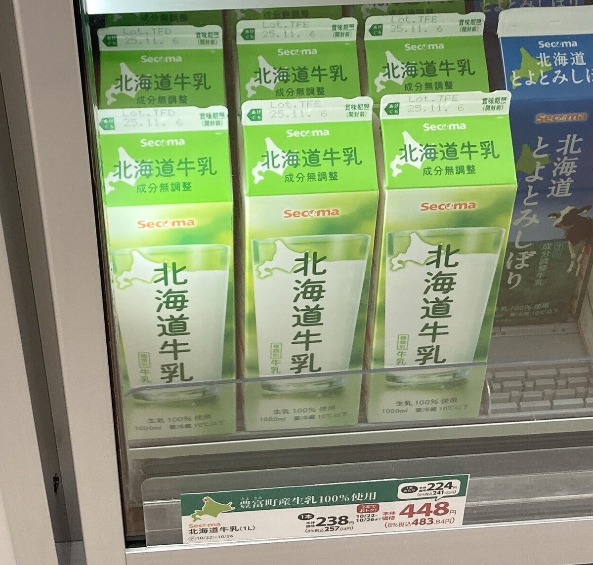 セイコーマートのラテ類の牛乳は、店で販売している北海道牛乳(豊富牛乳)を使用。