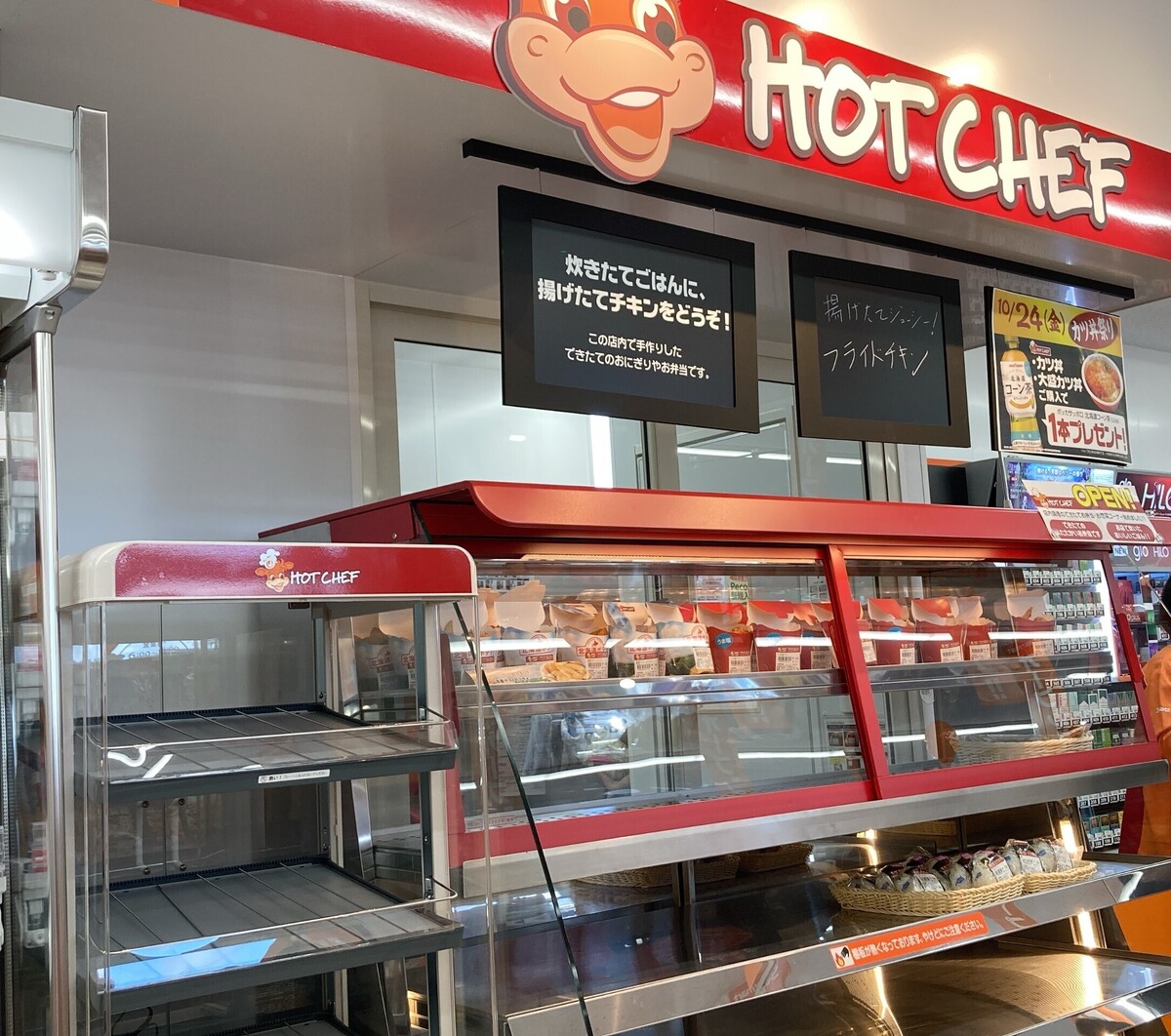 ホットシェフ併設で、できたてのお弁当や惣菜が充実。駐車場も広く、車でも立ち寄りやすいのがうれしいポイントです。店内には北海道のおみやげコーナーもあり、観光客にも喜ばれそう。