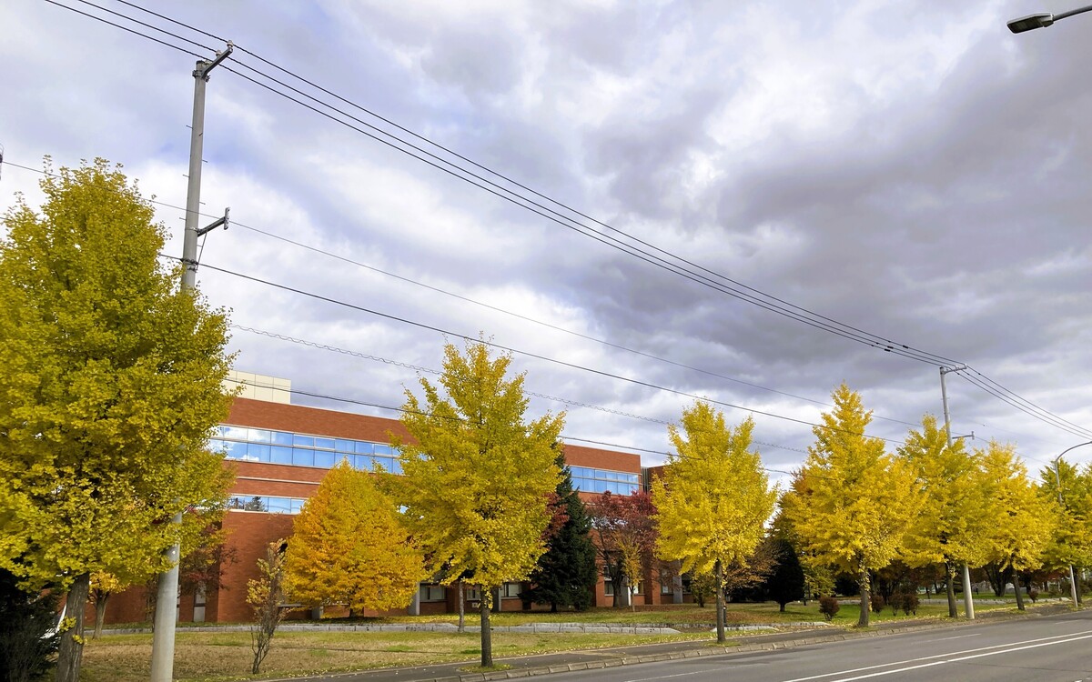 また、向かいの上川総合振興局の木々も鮮やか色づいていました。道路沿いのイチョウ並木も見ごろ。ドライブの合間に走り抜けるだけでも心が和むスポットです。