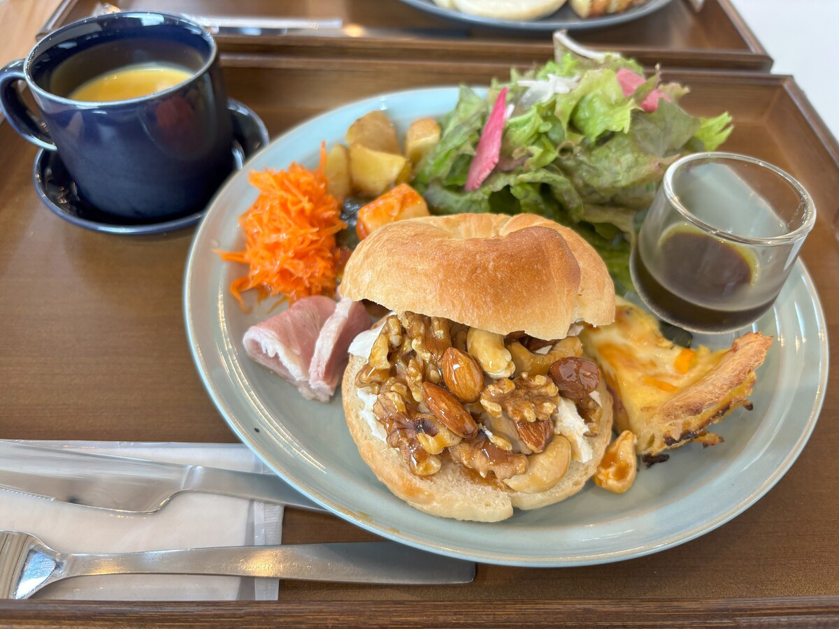 ベーグルは間に挟むものを2種類選ぶことができて、定番のクリームチーズとハニーナッツとデザート感覚のものにしました。