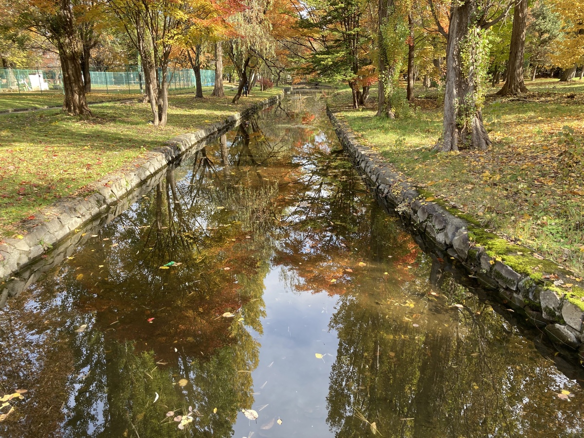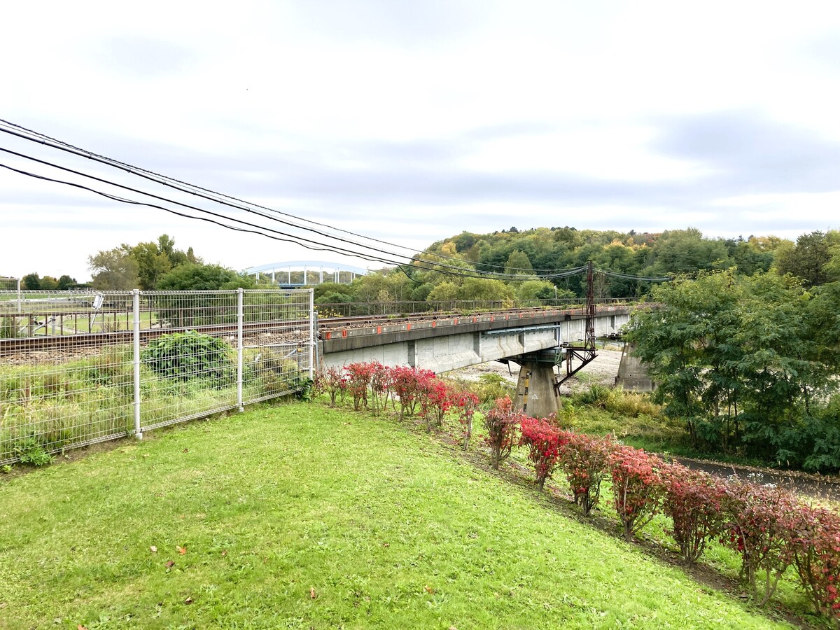 お隣の宮前公園との境目付近にはJR富良野線の鉄橋があり、運が良ければ紅葉を背景に列車が通過する瞬間を見られます。