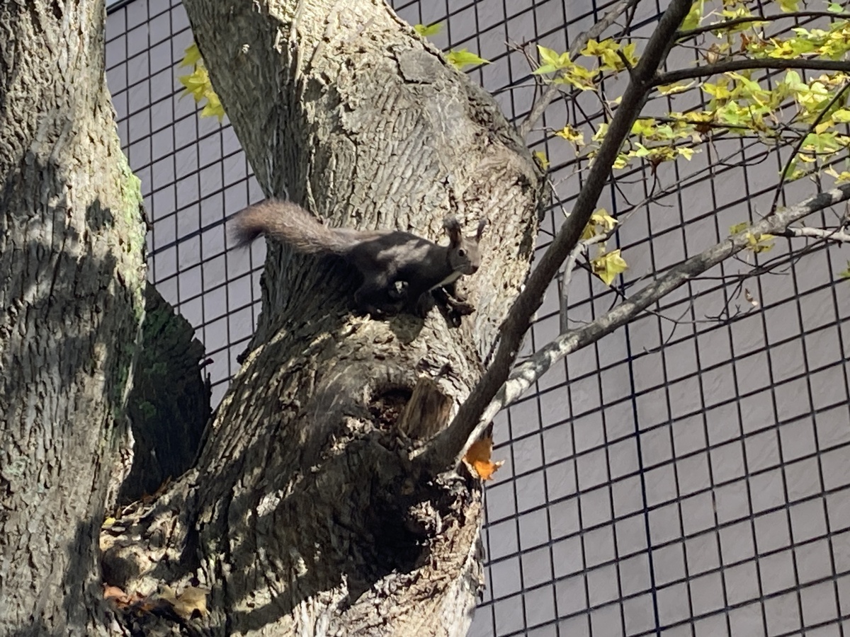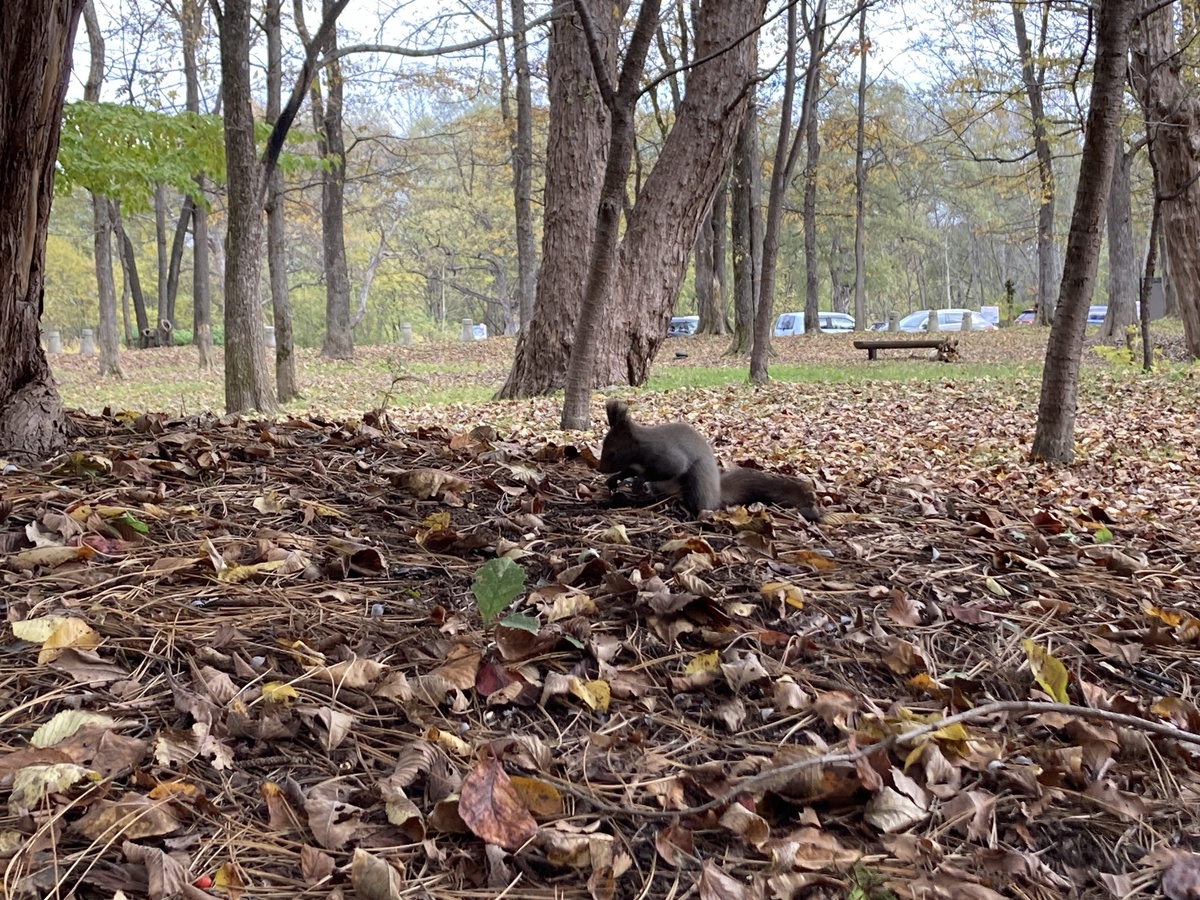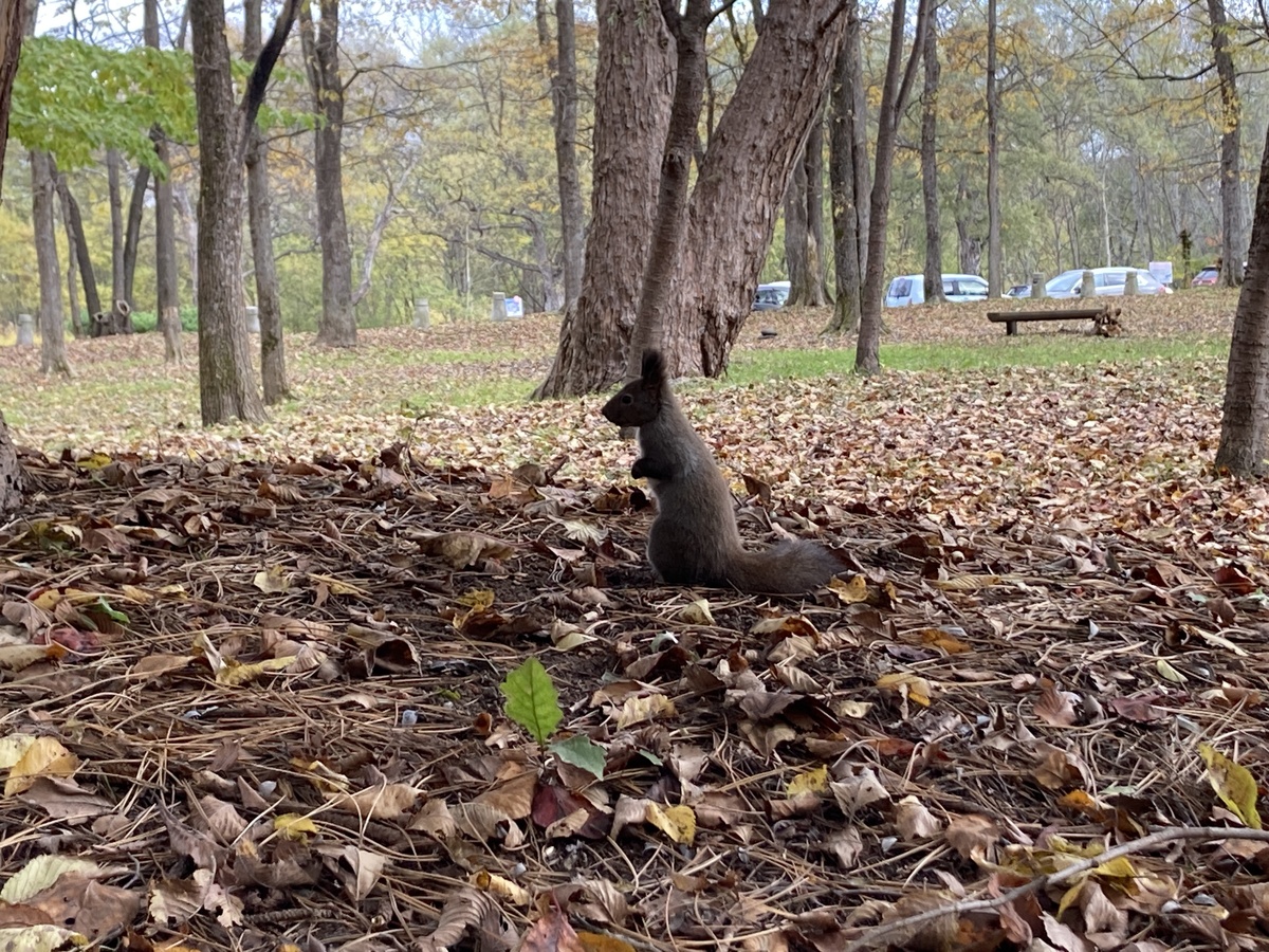 図書館の裏手あたりでは、木の実をせっせと集めるエゾリスの姿も発見!思わぬ出会いに、足を止めてしばし観察しました。