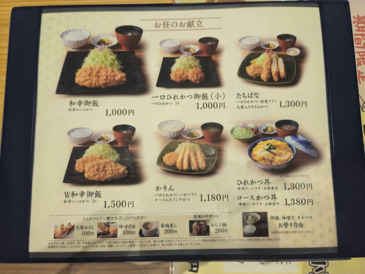 メインのヒレカツ、ごはん、スープがセットで、ヒレカツはプラス120円で1枚追加することもできます。