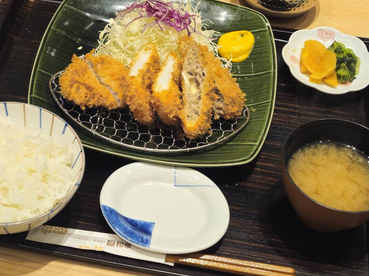 メンチカツはジューシーなお肉の美味しさを堪能できる味わいで、とろとろチーズたっぷり。