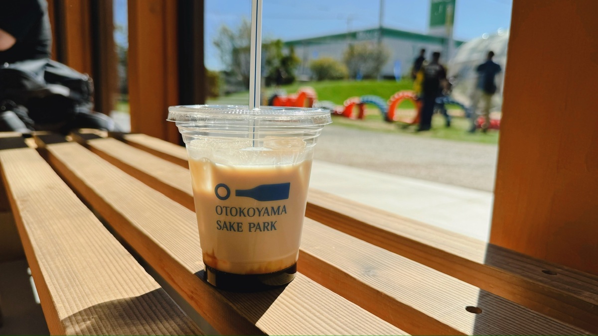 売店のところにはカフェがあって、男山ライスラテを購入(たしか450円でした)。