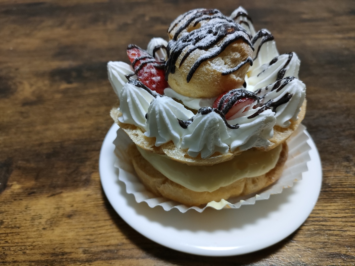 かなり贅沢なメガ盛りシュークリームといったところでしょうか。