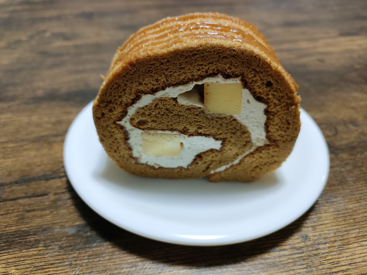 こちら「カラメルプリン」(税別310円)は焼きプリンが中に入ったロールケーキ。