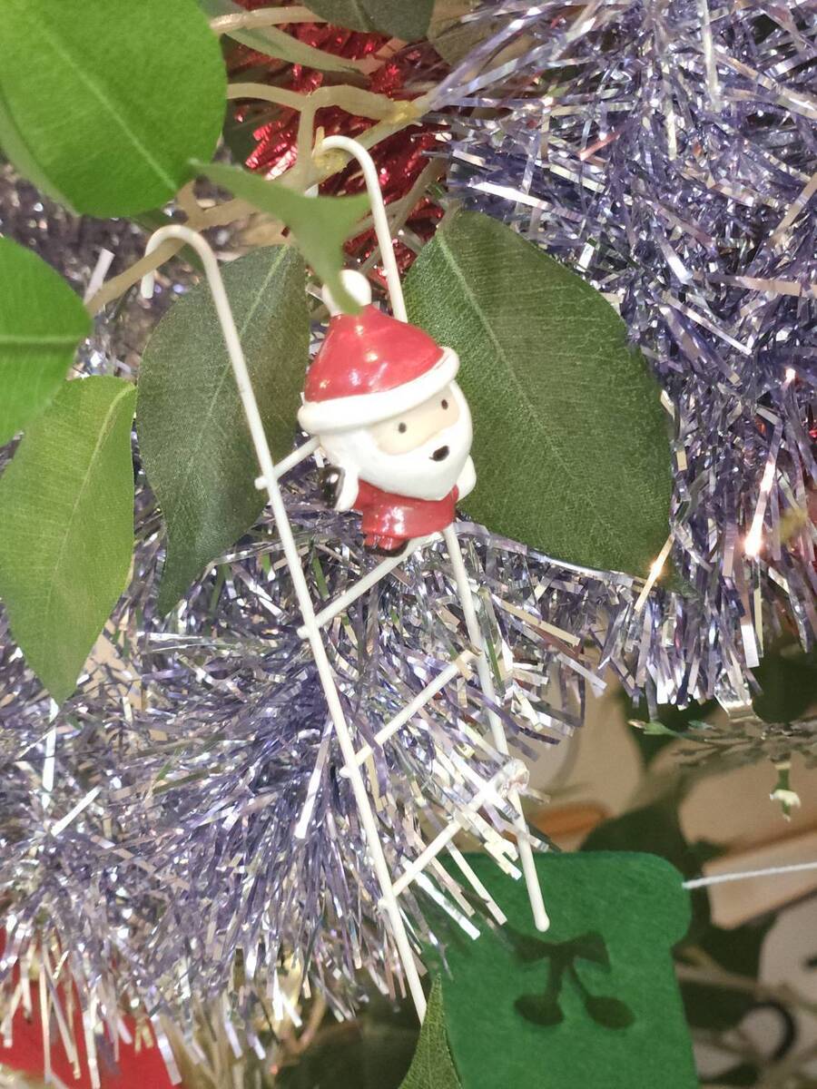 はしごを上っているサンタの可愛らしいオーナメントも税込110円。