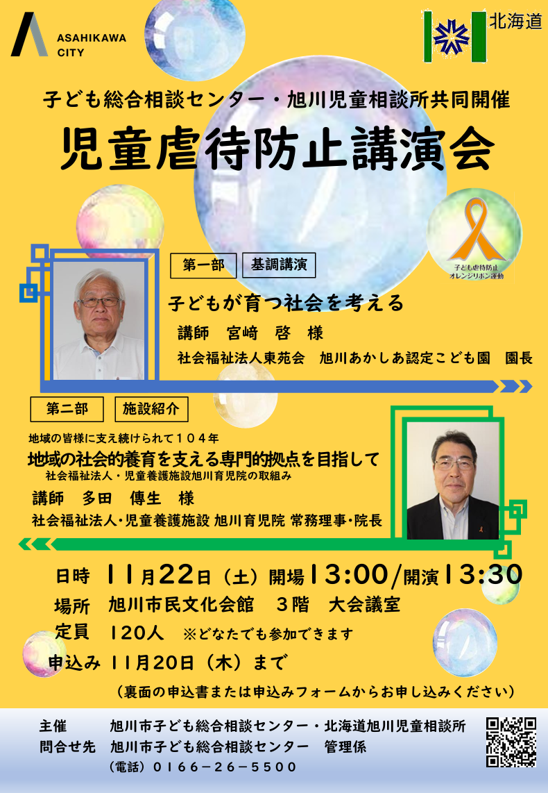 2025年11月22日(土)に旭川市民文化会館で『児童虐待防止講演会』が開催されます。